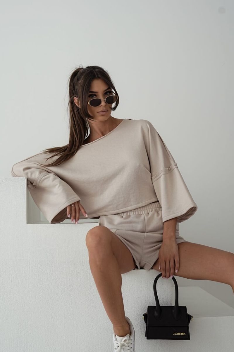 Bluza beżowa oversize MMK ENJOY to kolejny doskonały model bawełnianej bluzy z kolekcji polskiego producenta . Bluza beżowa oversize posiada rozszerzane rękawy o długości 3/4. Tworzy idealny komplet ze spodenkami krótkimi w tym samym kolorze lub z legginsami.