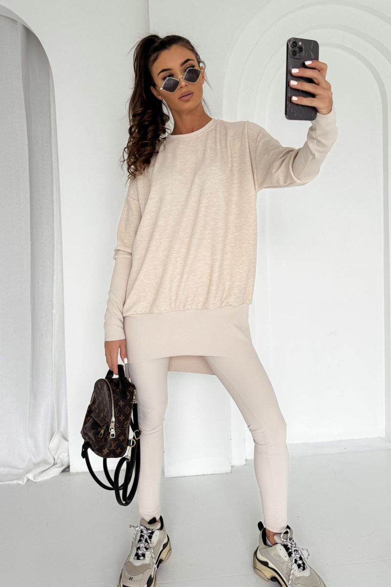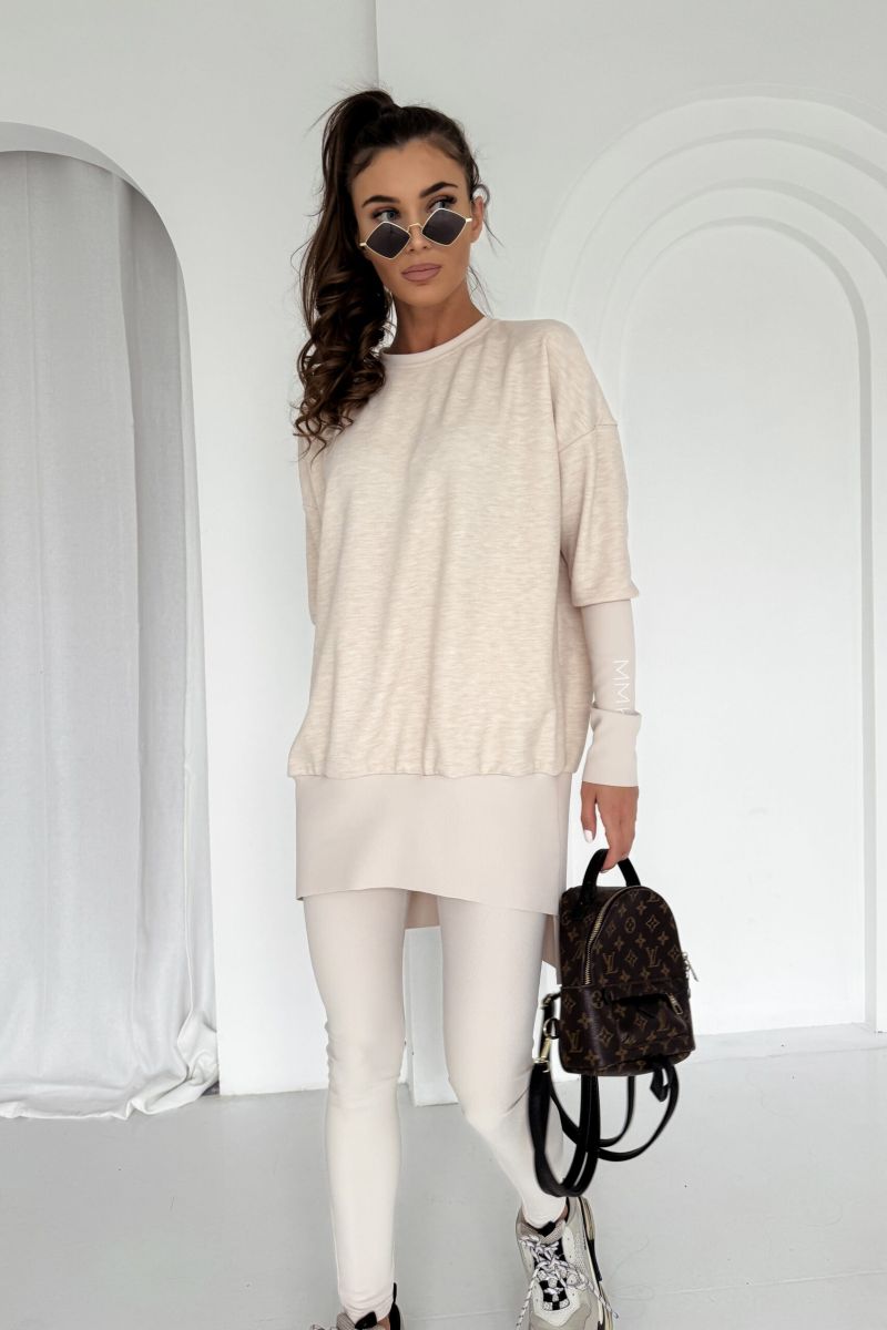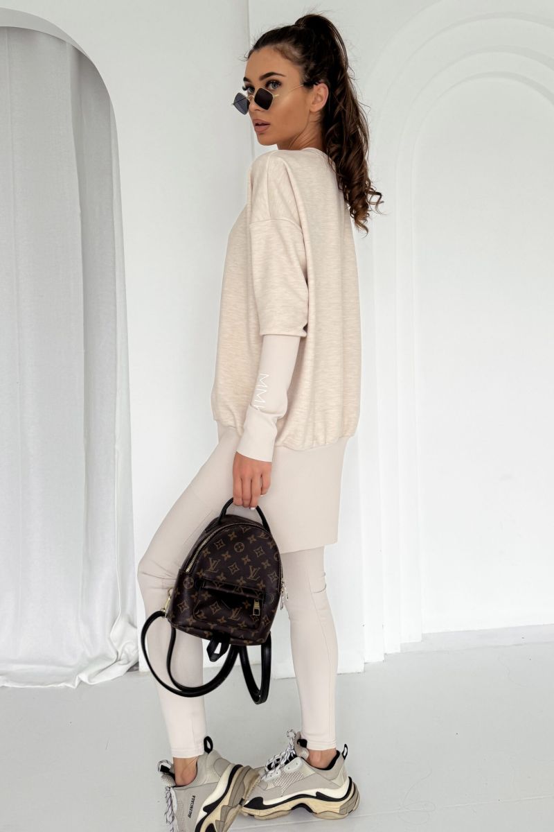 Bluza beżowa Porto to doskonały wybór do wielu stylizacji. Uszyta z przyjemnej, delikatnej tkaniny (będzie idealna nawet latem) z charakterystycznych ściągaczem na rękawach. Model Porto jest dłuższy od standardowej bluzy, a dolny ściągacz pozwala na stylizowanie jej na wiele sposobów.