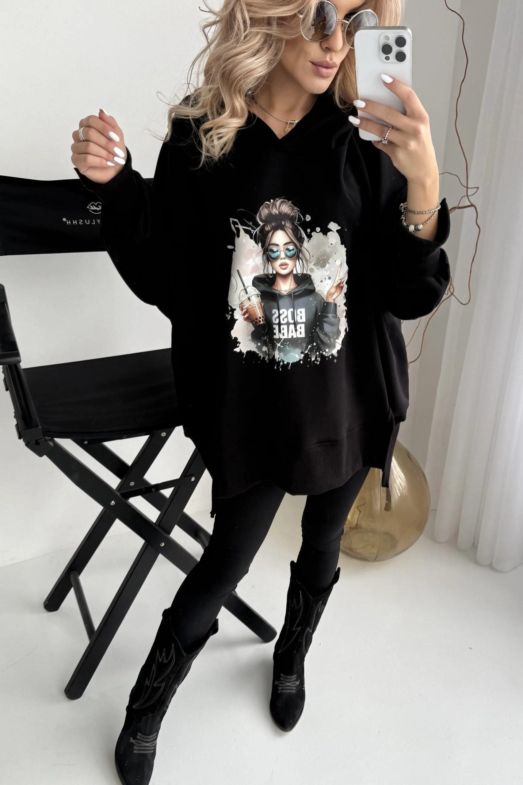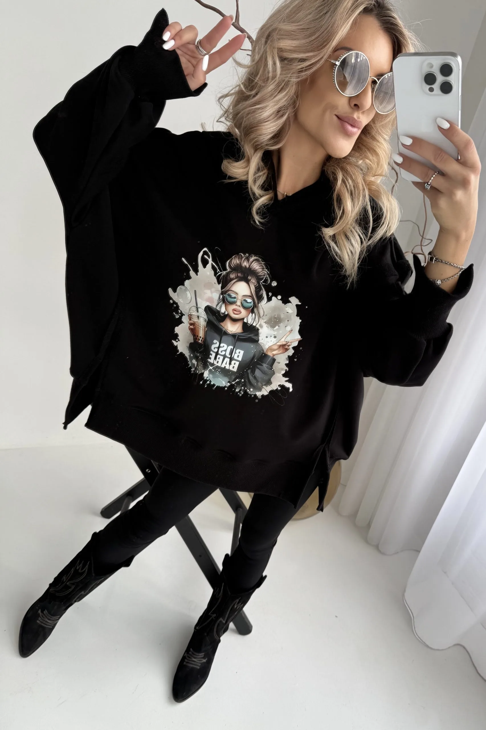 Bluza czarna z kapturem VIBE MMK to przepiękna, oversizowa bluza z modnymi przeszyciami i rozcięciami.