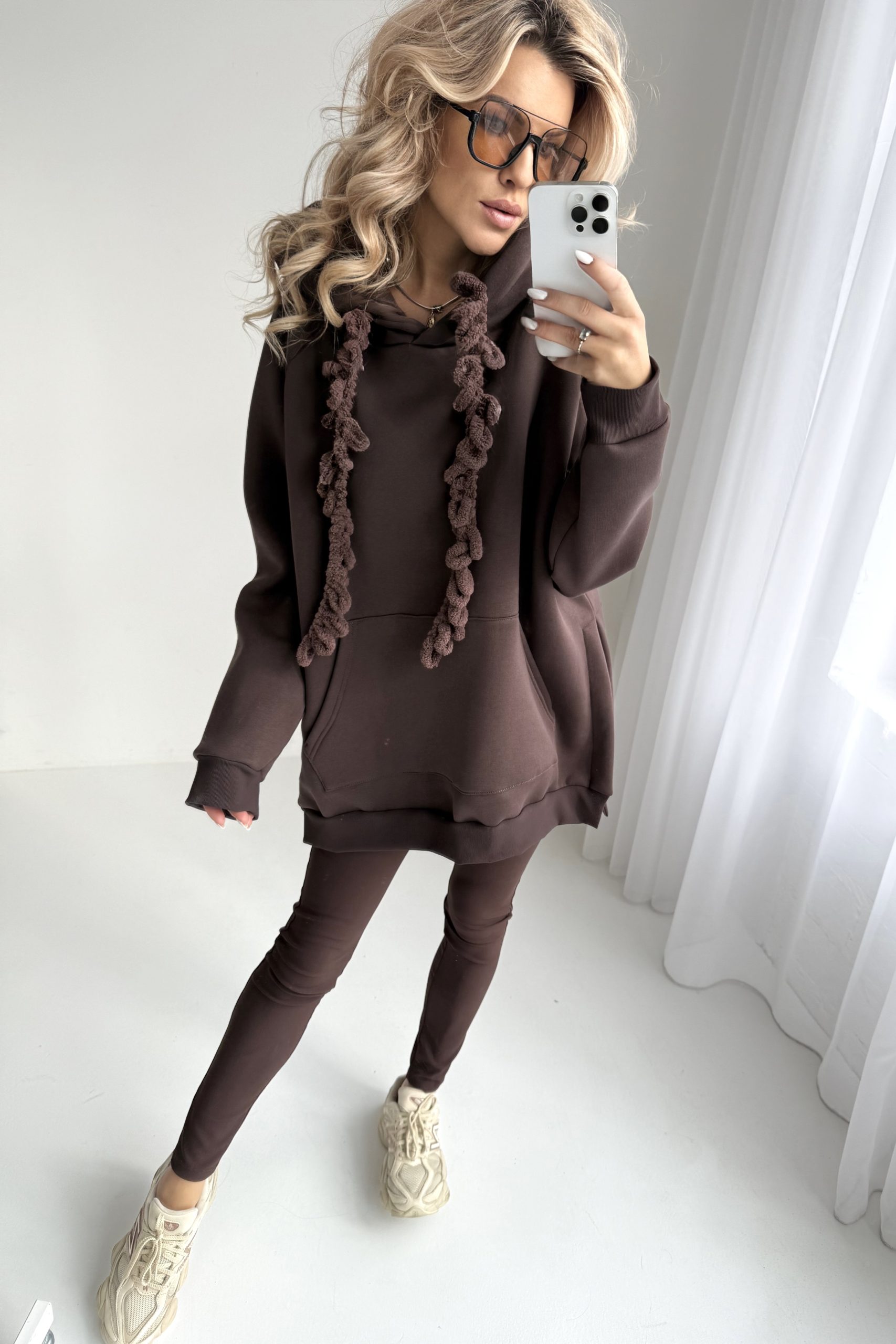 Bluza z kapturem długa Angel – czekoladowa