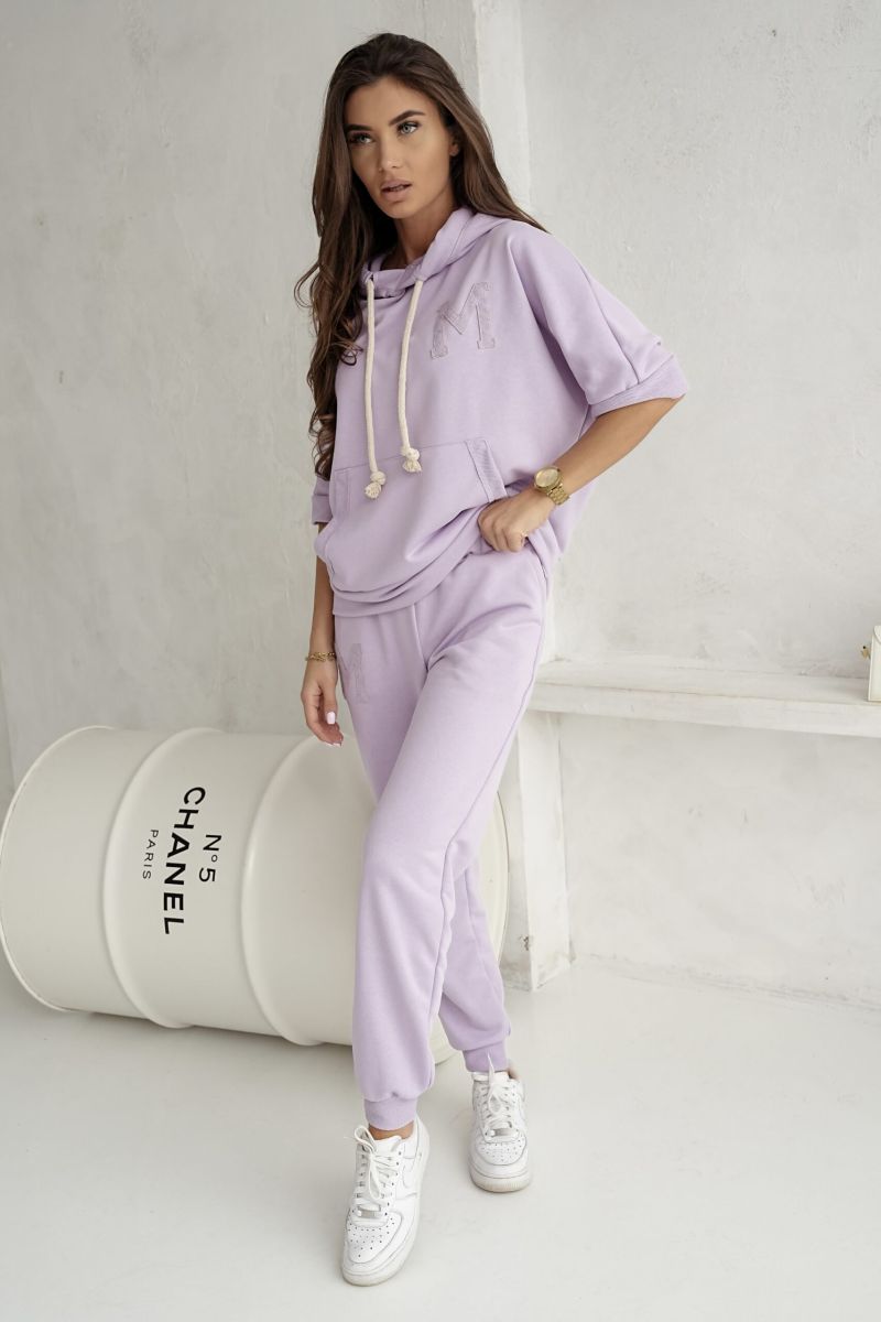 Bluza z kapturem liliowa krótki rękaw to wyjątkowa propozycja wykonana z bawełny w jakości premium z kolekcji SUMMER. Bluza z kapturem liliowa krótki rękaw posiada laserowo wycinaną literkę M naszytą z przodu. Stanowy świetny letni zestaw ze spodenkami dresowymi z kolekcji SUMMER w tym samym odcieniu. Można do niej dobrać również długie spodnie dresowe oraz legginsy z serii PUSH UP w wersji krótkiej lub długiej.