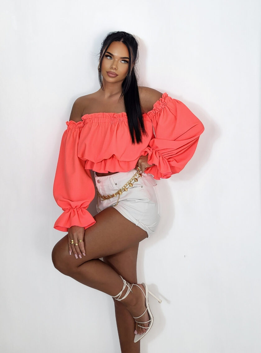 Bluzka hiszpanka LALA Grejpfrut Neon to wybór dla kobiet, które lubią modę i nie boją się kolorów. To model, który od razu przyciąga wzrok i podkreśla pewność siebie.