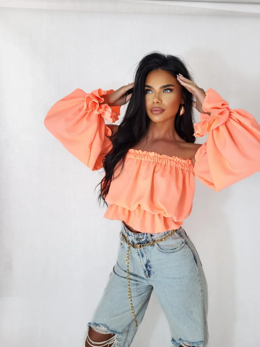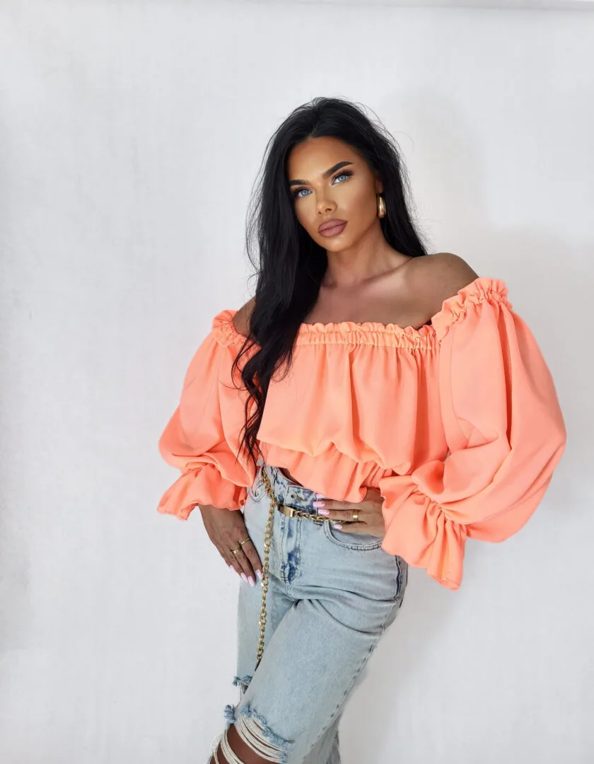 Bluzka hiszpanka z długim rękawem koralowa Lala