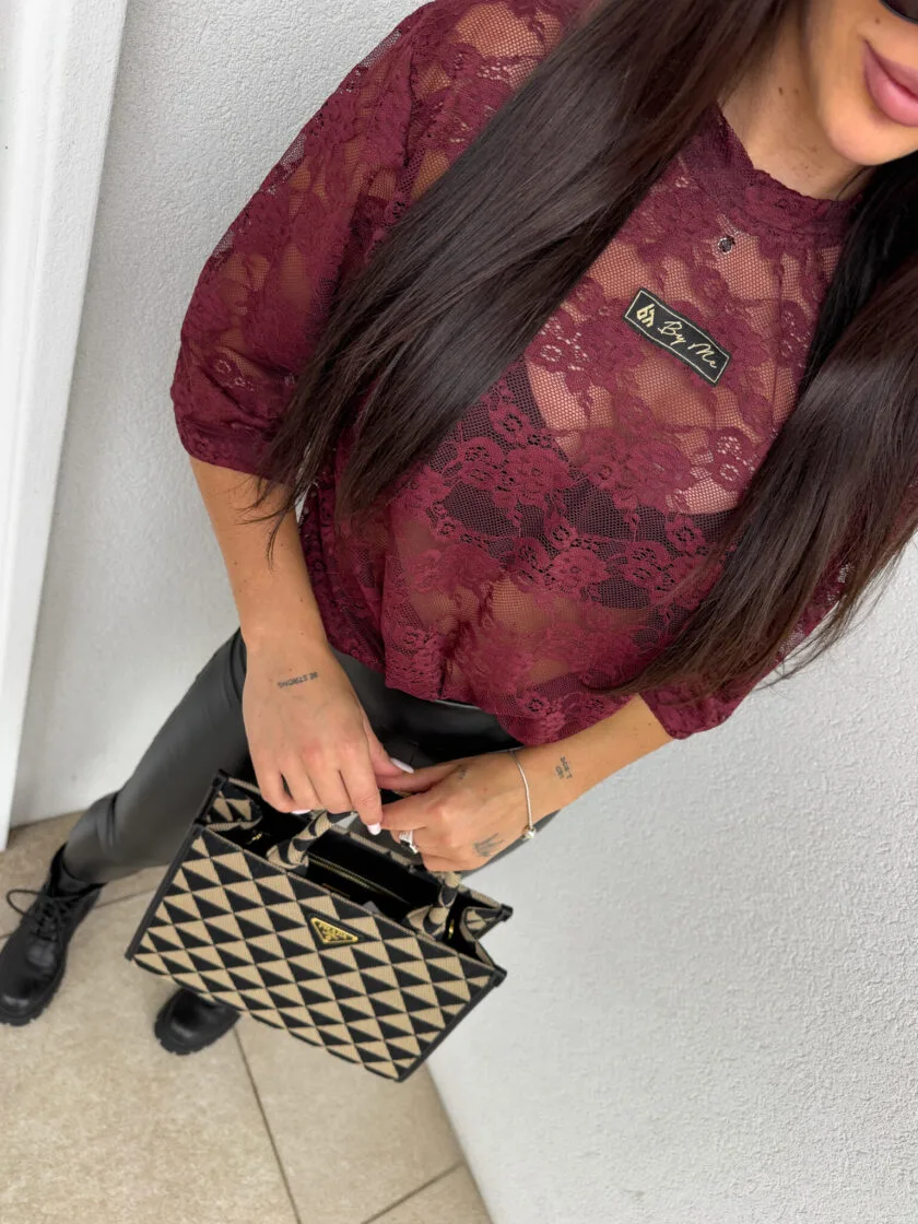 Bluzka koronkowa By Me Marmaris bordowa została uszyta w Polsce.