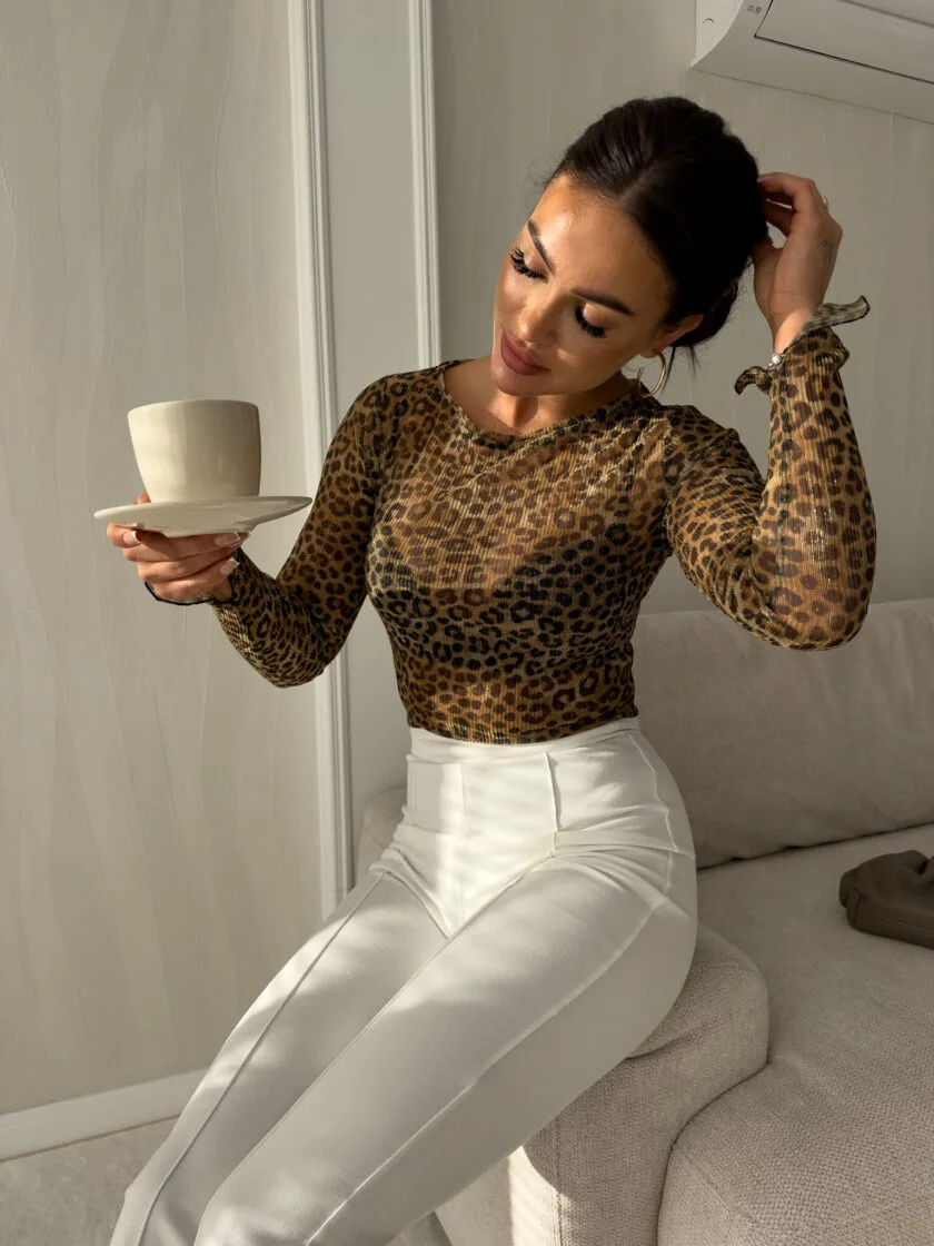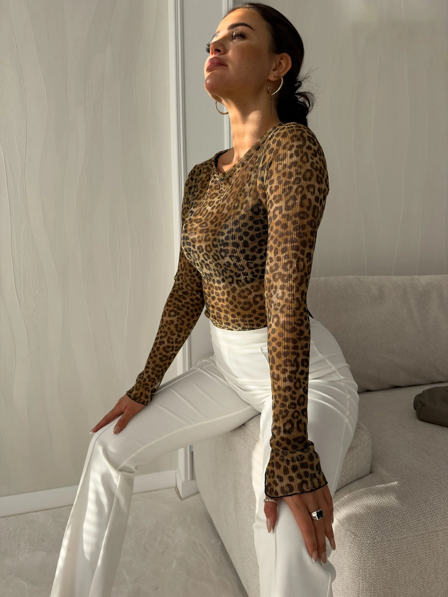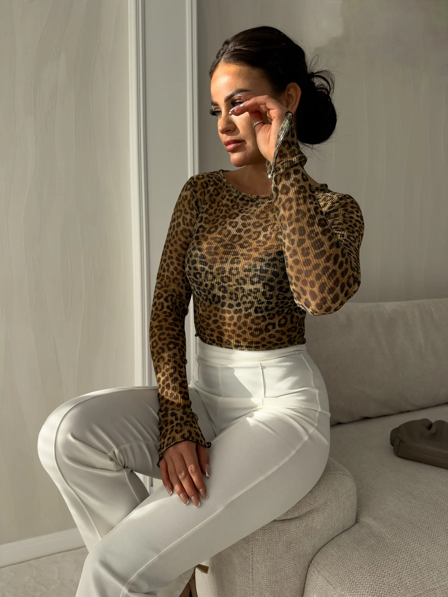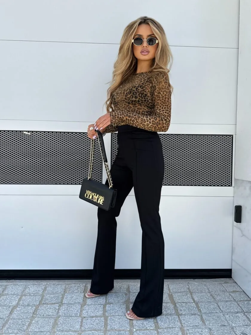 Bluzka w panterkę z rozszerzanymi rękawami By Me Shy o prostym kroju. Rękawki wykończone rozcięciem z mereżką. Bluzeczka jest rewelacyjna! Nie posiada podszewki, całość lekko prześwituje. Została uszyta z przyjemnego elastycznego materiału w bardzo modnym nadruku w panterkę. Wygląda elegancko i pasuję do wielu stylizacji. Świetna w połączeniu z czarnymi spodniami, jak i również ze spódniczką. Wybierając bluzeczki od By me nie zawiedziesz się – ich projekty są zawsze stylowe i na czasie, a wykonanie w najwyższej jakości z dbałością o szczegóły.