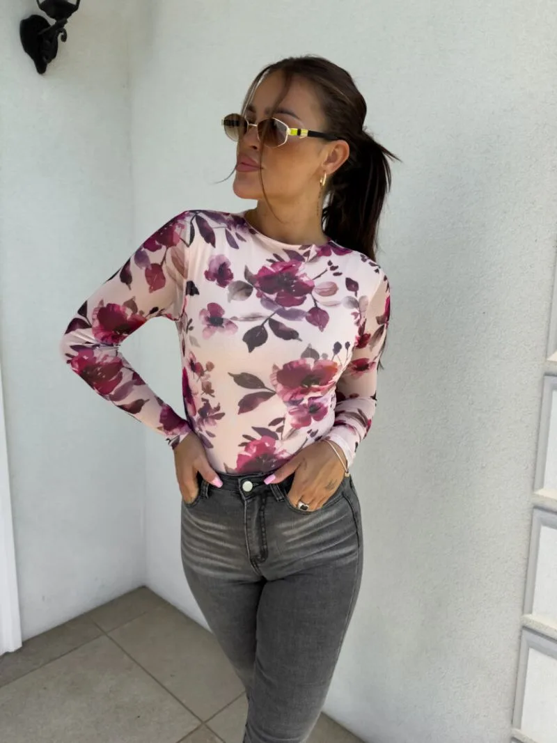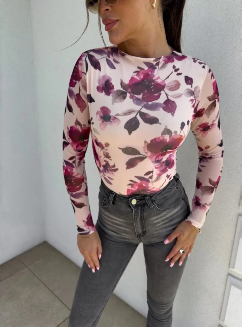 Bluzka z siateczką w kwiaty beżowa SKIN o dopasowanym kroju sprawdzi się jako baza do wielu różnorodnych stylizacji. Wykonana z bardzo delikatnej, miłej w dotyku siateczki. Przód i tył z delikatną podszewką, dzięki której nic nie prześwituje. Charakteryzuje się rękawem typu long sleeve. Jej krój zagwarantuje komfort i wygodę noszenia. Bluzka z siateczką w kwiaty beżowa posiada delikatną stójkę.