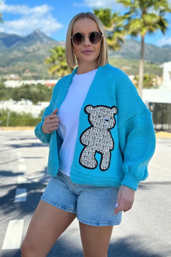 Kardigan z misiem niebieski SPLOTY
