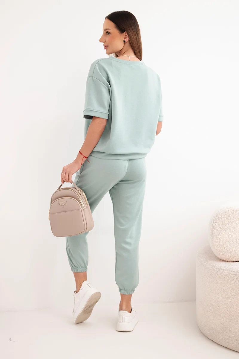 Komplet składa się z luźnej bluzki z krótkim rękawem oraz wygodnych spodni z elastycznym pasem, dzięki czemu tworzy gotową stylizację na wiele okazji – od spaceru po mieście po relaks w domu.