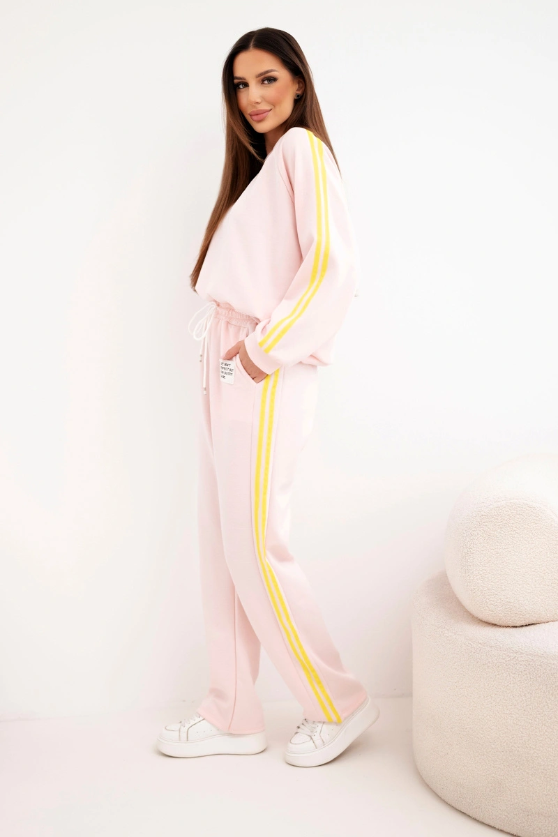 Komplet dresowy damski masełko – pudrowy róż z lampasami