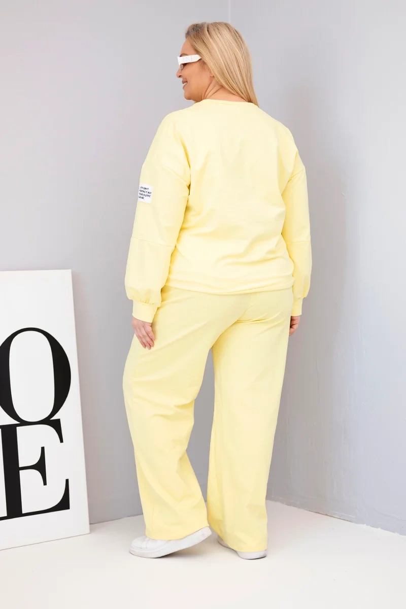 Komplet dresowy Plus Size – żółty, z luźną bluzą i szerokimi nogawkami