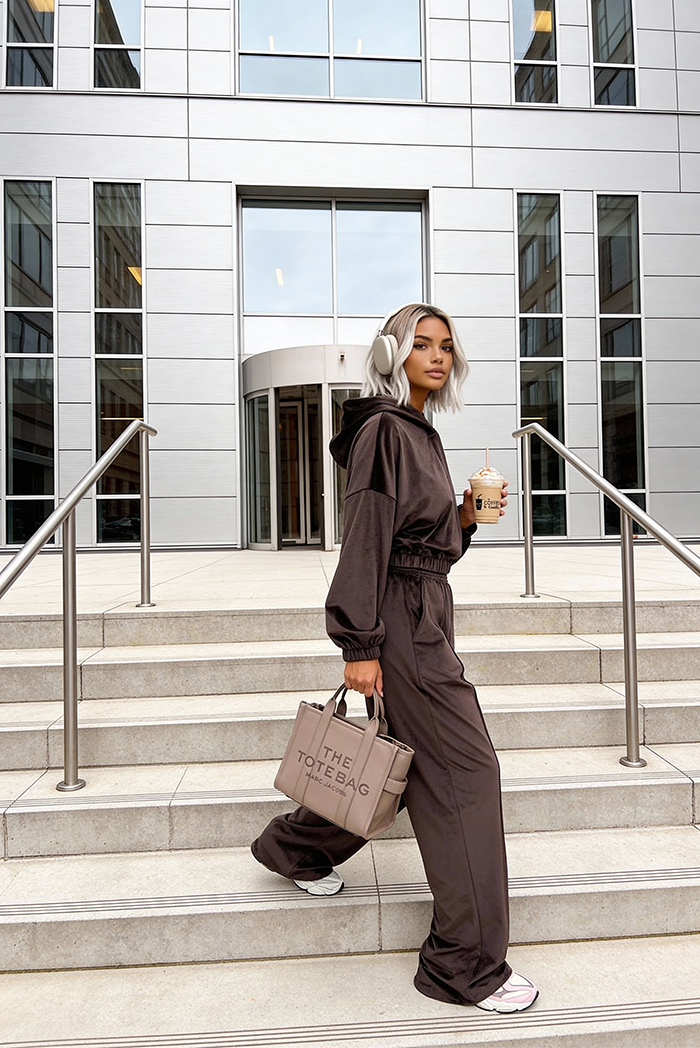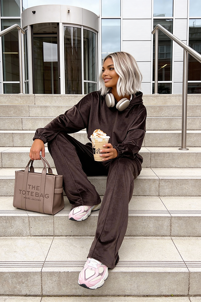 Komplet dresowy welurowy Cloud – czekoladowy komplet damski