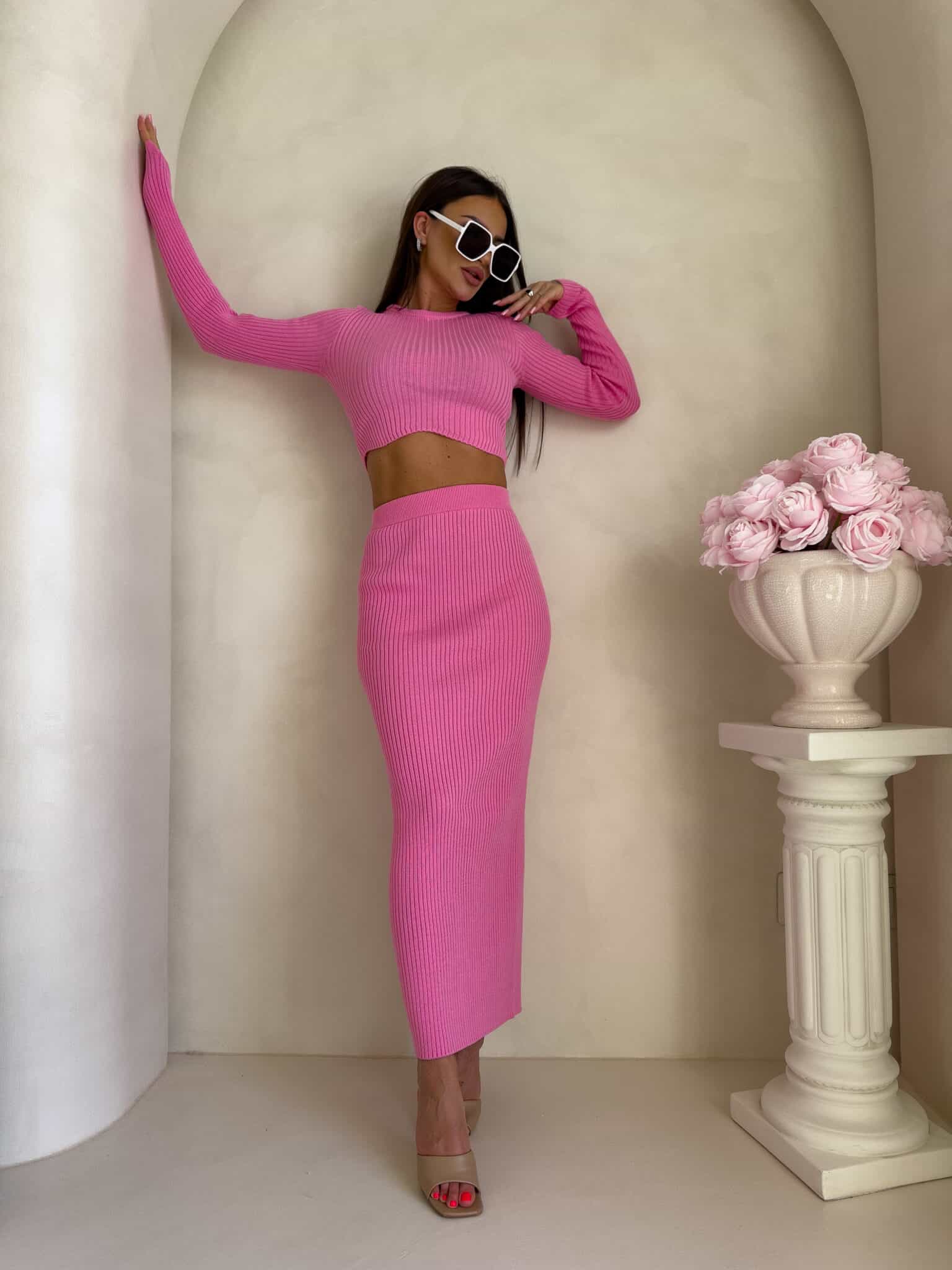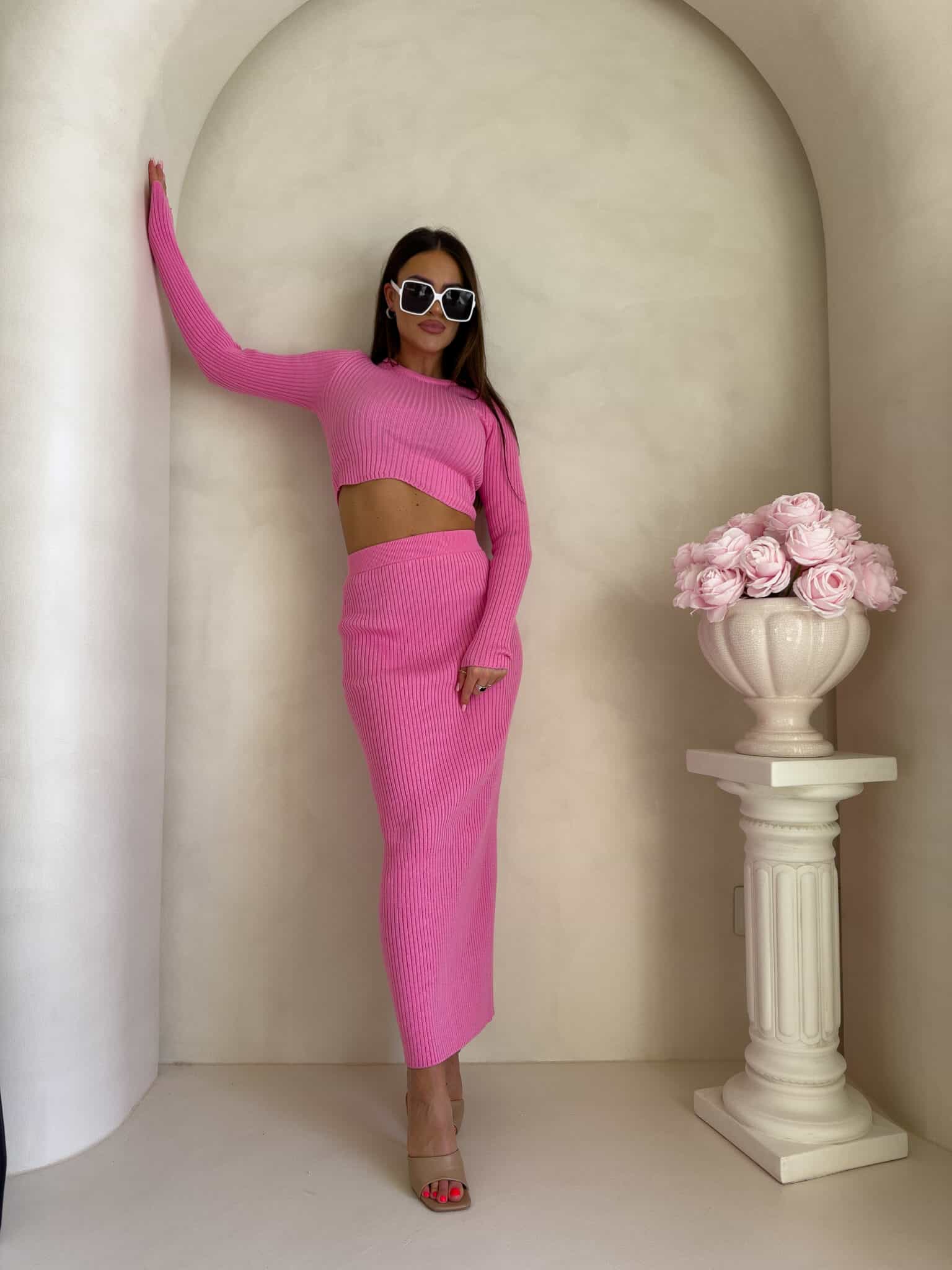 Komplet dzianinowy ze spódnicą Melbourne – różowy