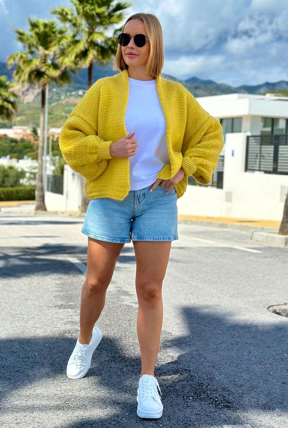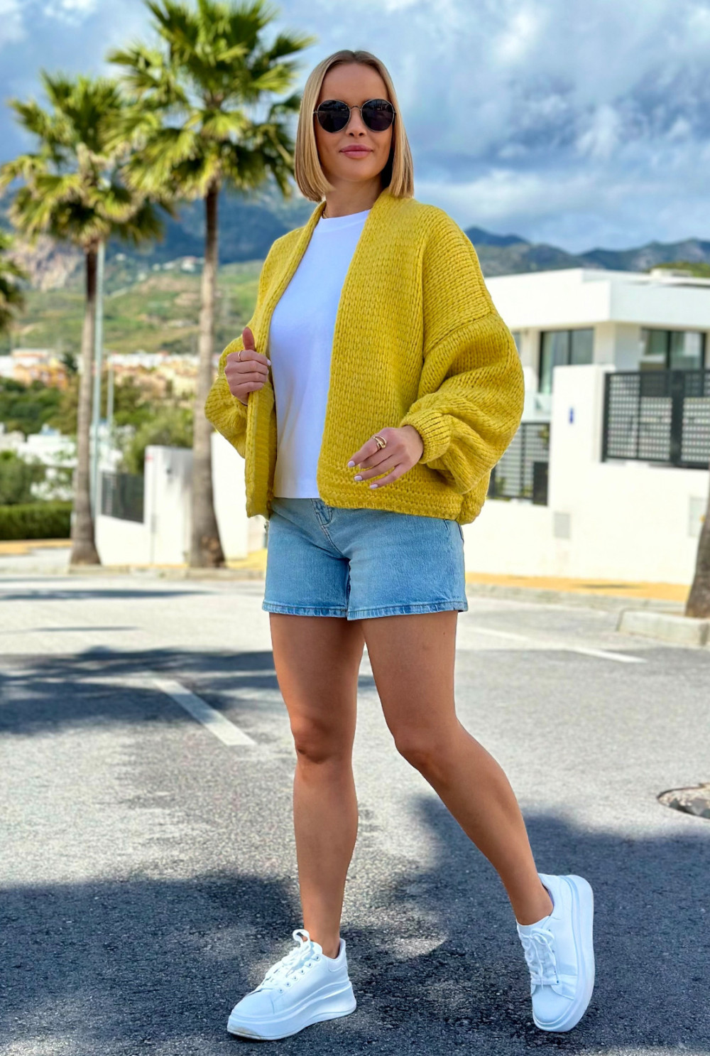 Krótki kardigan cytrynowy Valentina o oversizowym kroju to idealny wybór do wielu stylizacji. Valentina to wyjątkowo miękki kardigan, to propozycja, która koniecznie powinna znaleźć się w każdej garderobie! Prosty, jednak niebanalny fason, który prezentuje się fenomenalnie. Posiada ściągacze przy rękawach. Model dostępny w wielu kolorach – między innymi: róż, beż, czarny, ecru, turkus, fuksja, pudrowy róż i wiele innych. Postaw na klasyczny fason, który nie wyjdzie z mody.