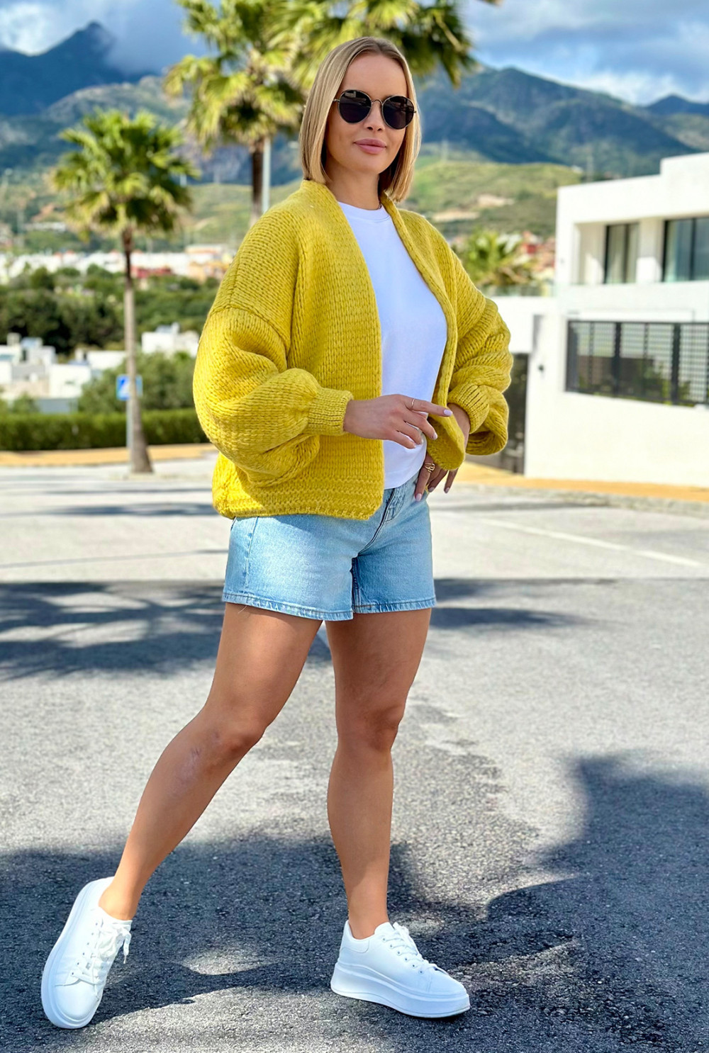 Krótki kardigan cytrynowy Valentina został uszyty w Polsce.