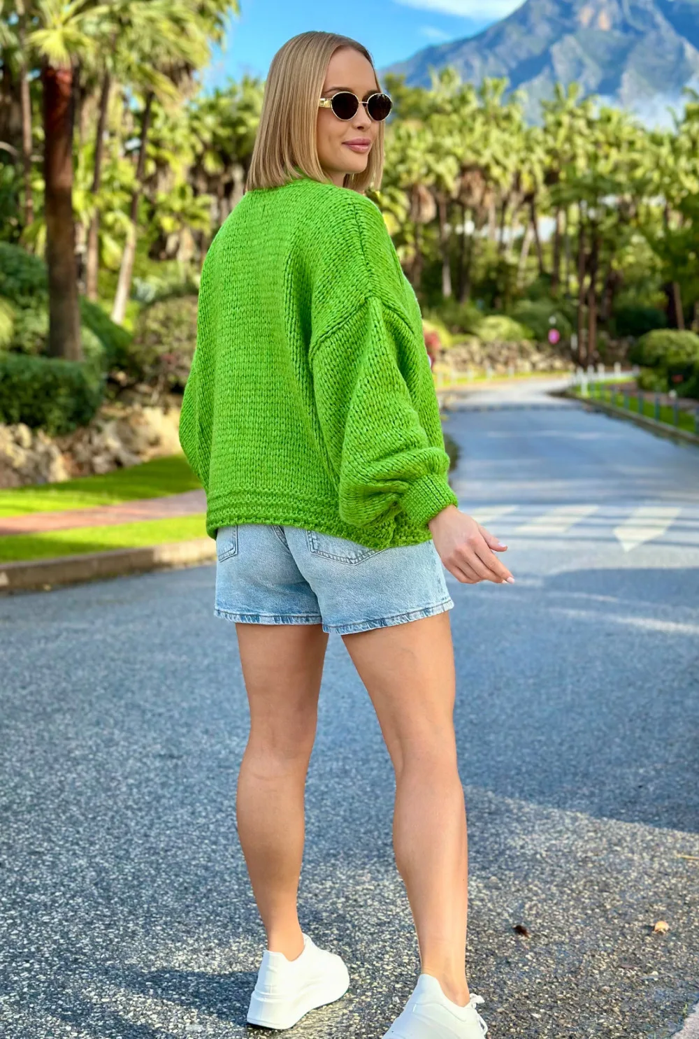 Krótki kardigan zielony Valentina o oversizowym kroju to idealny wybór do wielu stylizacji. Valentina to wyjątkowo miękki kardigan, to propozycja, która koniecznie powinna znaleźć się w każdej garderobie! Prosty, jednak niebanalny fason, który prezentuje się fenomenalnie. Posiada ściągacze przy rękawach. Model dostępny w wielu kolorach – między innymi: róż, beż, czarny, ecru, turkus, fuksja, pudrowy róż i wiele innych. Postaw na klasyczny fason, który nie wyjdzie z mody.