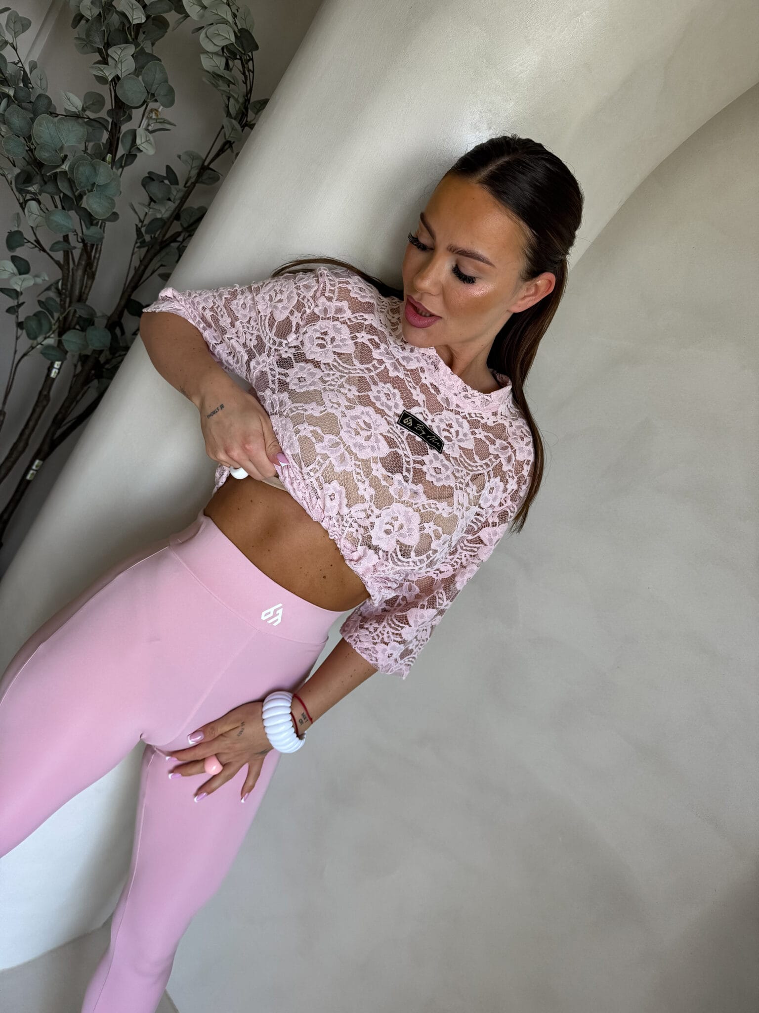 Legginsy By Me różowe GYM uszyte bardzo elastycznego materiału. Logo na pasie. Klasyczny czarny kolor sprawdzi się w wielu stylizacjach – sportowych oraz casualowych.