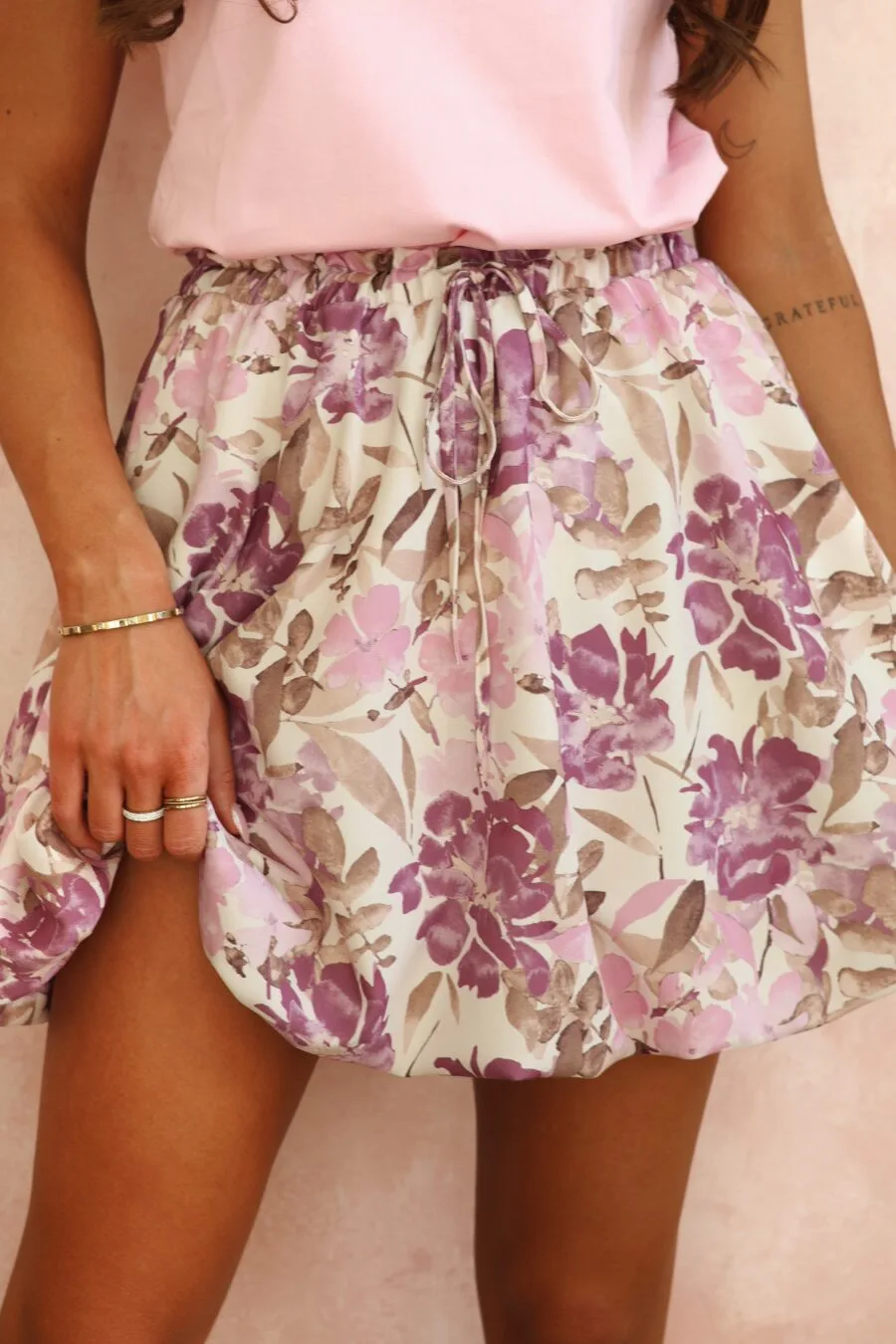 Spódnica bombka w kwiaty różowa