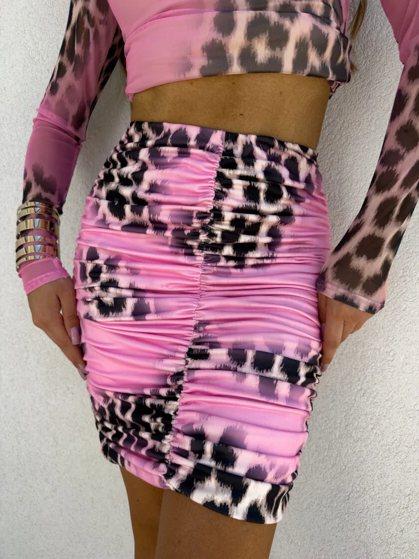 Spódnica marszczona mini w panterkę różowa