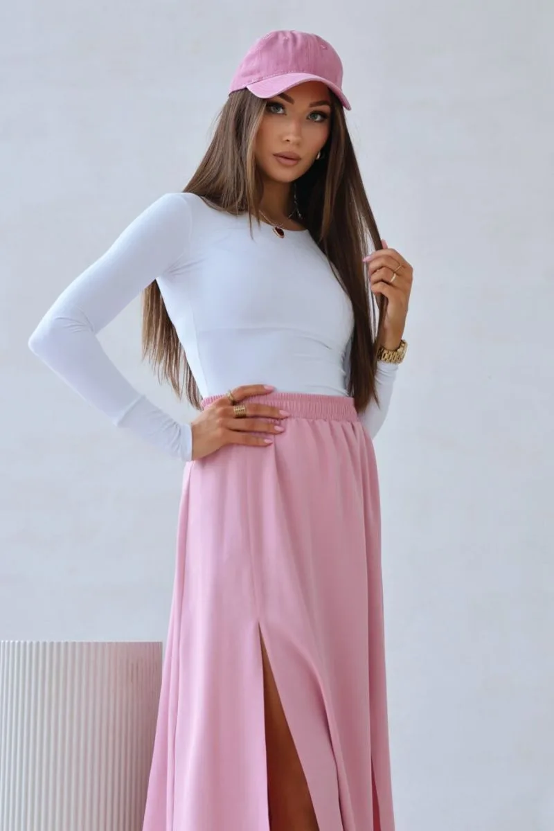 Spódnica satynowa różowa Viva o asymetrycznym kroju z dwoma efektownymi rozcięciami z przodu to idealne połączenie elegancji i nowoczesnego stylu. Wykonane z najwyższej jakości satyny oraz wiskozy, zapewniają lekkość, przewiewność i doskonałe dopasowanie do sylwetki.
