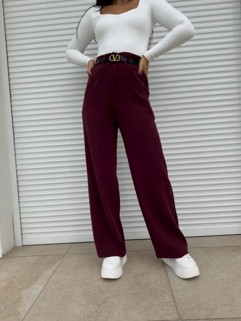Spodnie bordowe SIMPLE idealnie podkreślają figurę oraz pięknie wydłużają nogi. Zapinane na guzik. Posiadają szlufki. Spodnie bordowe Simple to klasyczne spodnie pasujące do wielu stylizacji.