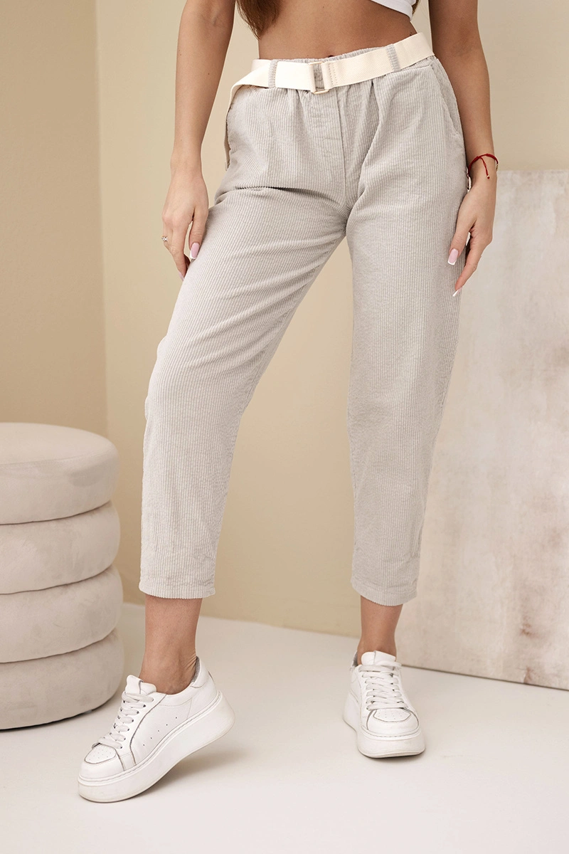 Spodnie damskie sztruksowe beżowe z paskiem