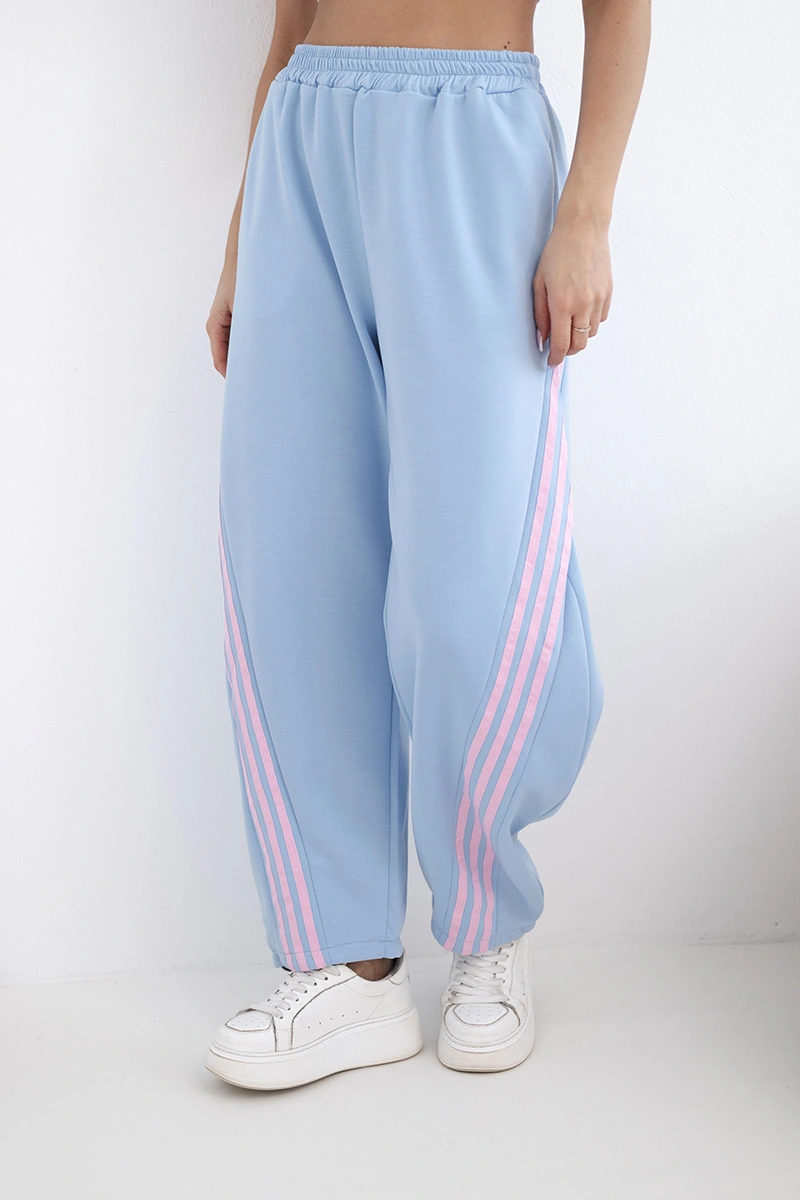 Spodnie dresowe masełkowe z wiskozy z lampasem – niebieskie