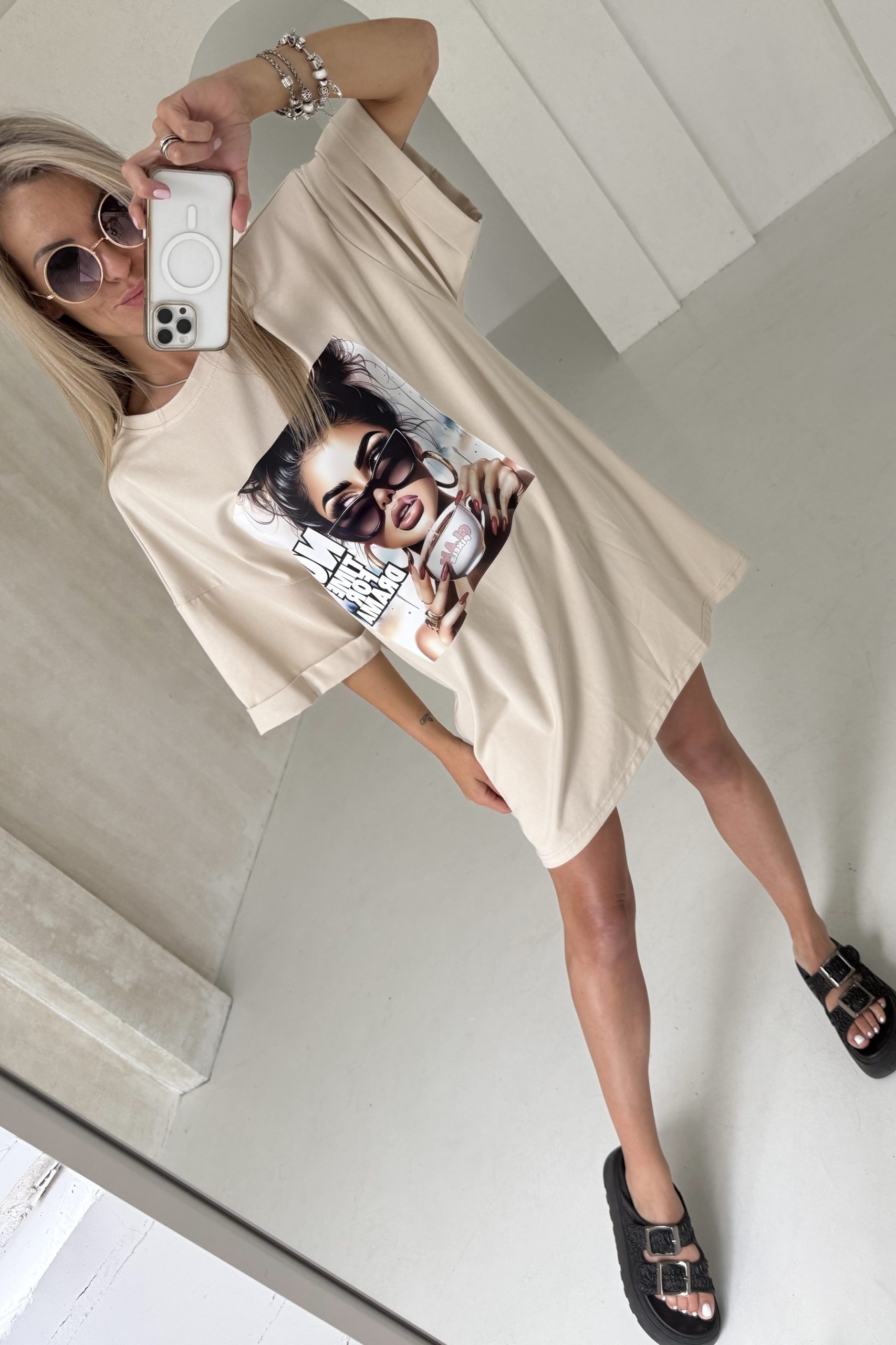 Sukienka T-shirt No Time For Drama – beżowa