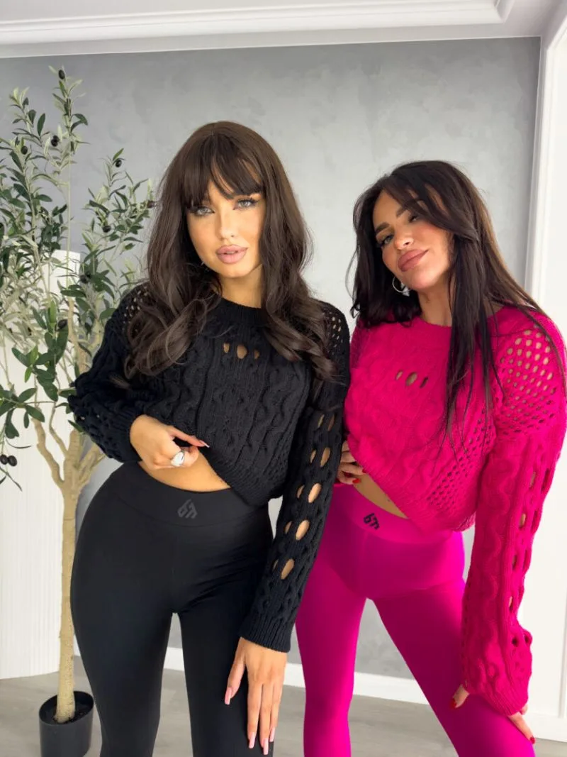 Sweter ażurowy fuksja Moon został uszyty w Polsce: By Me