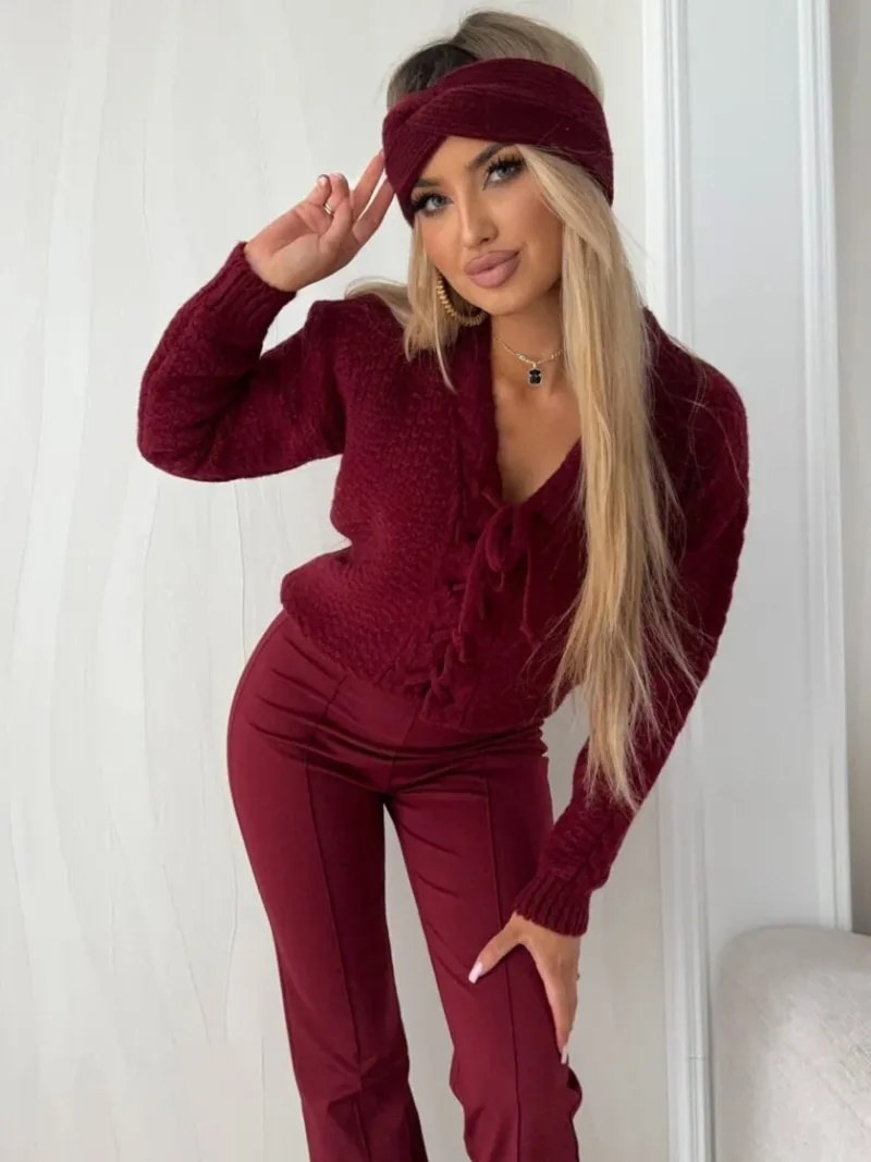 Sweter bordowy z wiązaniem Sunny został wyprodukowany w Polsce: By Me Anita