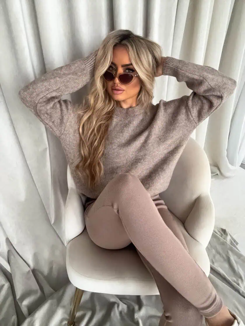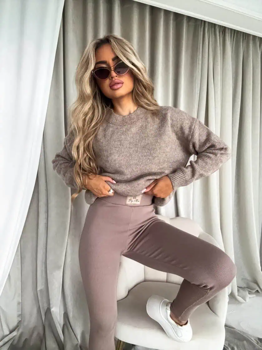Sweter mokka By me Nerys został uszyty w Polsce.