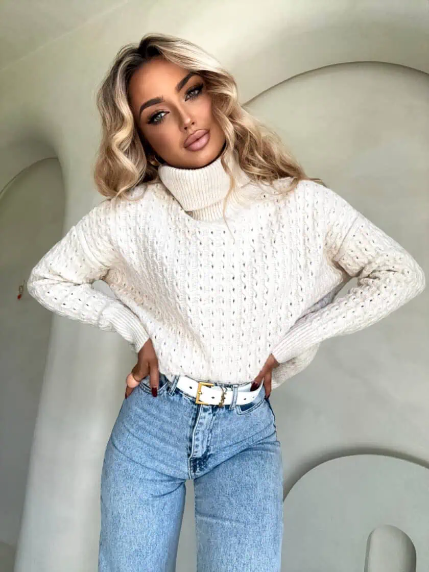 Sweter od By Me to obowiązkowy punkt w każdej szafie, sprawdzi się w wielu stylizacjach, a ponadczasowy, klasyczny fason sprawia, że przez wiele sezonów nie wyjdzie z mody. Model dostępny jest w kilku klasycznych kolorach – ecru, beżowym, czarnym, pudrowym. Wybierz swój ulubiony kolor i stwórz z nim wiele stylizacji – połącz go z legginsami, jeansami lub spódniczką.