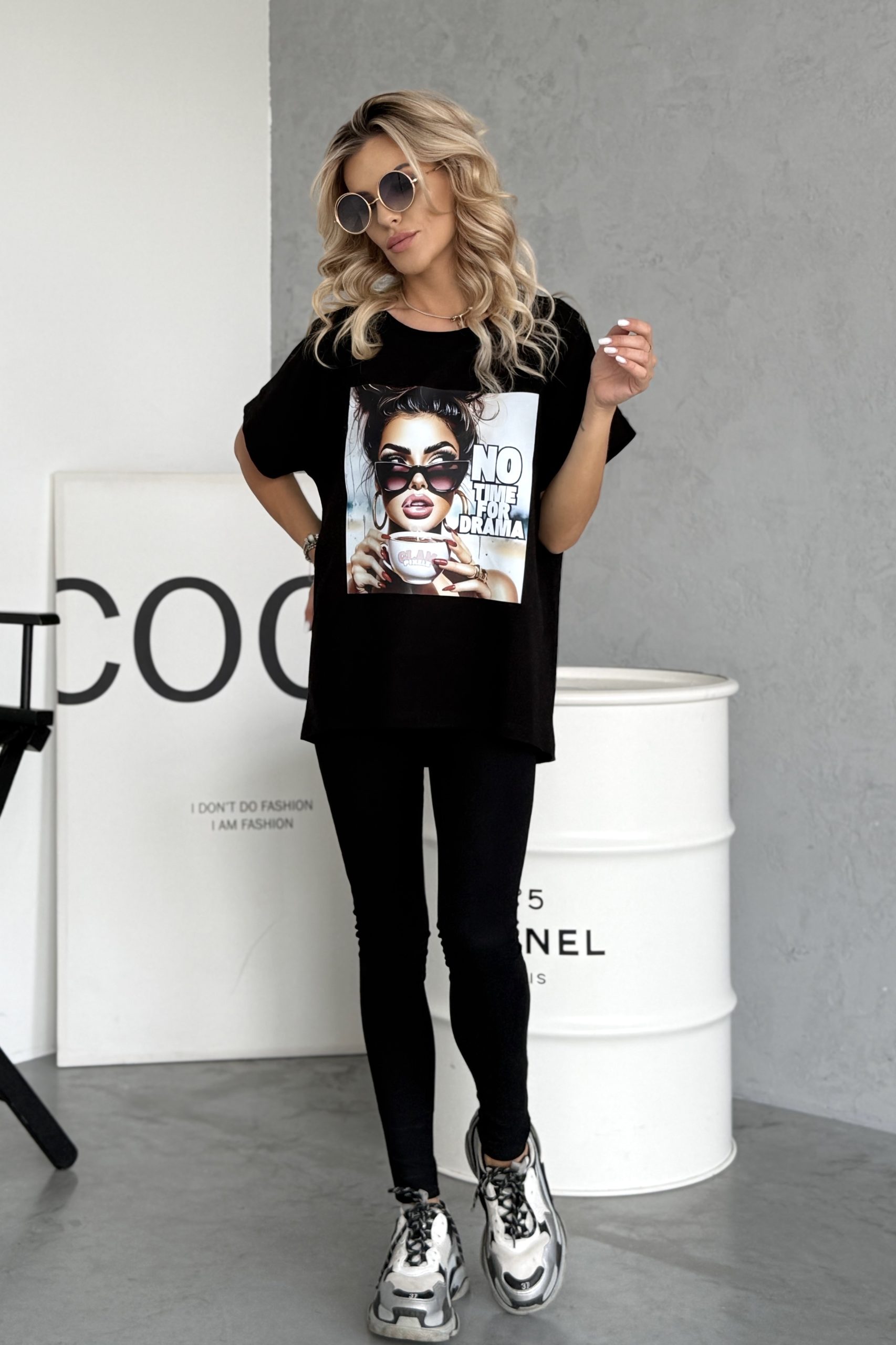 Modna, wygodna i z charakterem — taka jest bluzka Lou No Time For Drama w uniwersalnym, głębokim czarnym kolorze. Ten T-shirt w stylu oversize to propozycja idealna dla kobiet, które cenią sobie komfort noszenia i modny, miejski look. Nadruk „No Time For Drama” to stylowy akcent, który podkreśla osobowość i dystans do codziennych spraw 😌