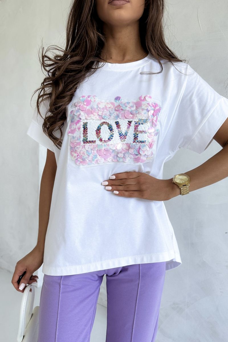 T-shirt z cekinami „Love”
