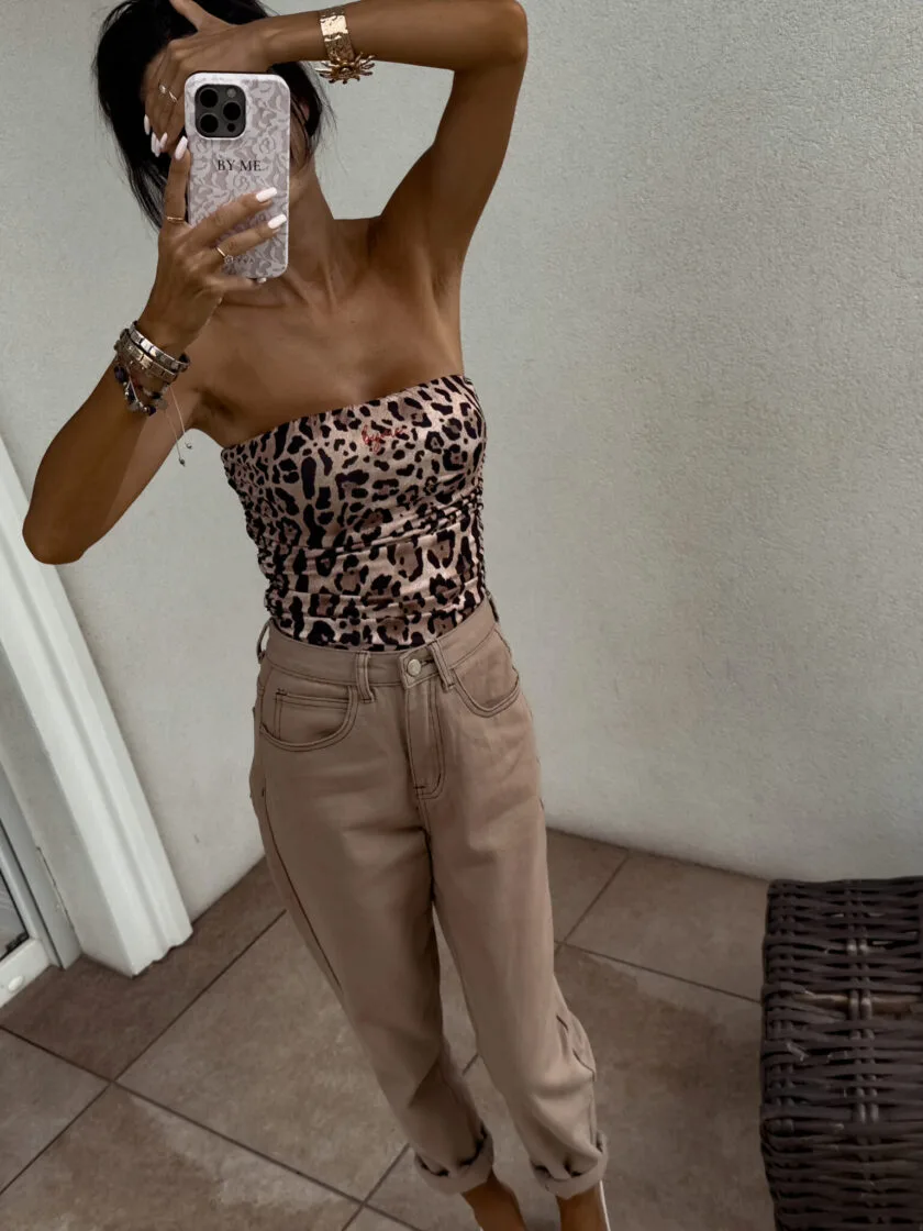 Top w panterkę Maven to Top logowany bez ramiączek to idealna baza do wielu stylizacji – od codziennych po wieczorowe. Wykonany z elastycznego, idealnie dopasowującego się materiału, gwarantuje komfort noszenia i świetne dopasowanie do sylwetki. Top posiada podwójną warstwę materiału, co zapewnia lepsze krycie i trwałość, a subtelne marszczenia po bokach i z tyłu dodają mu charakteru i delikatnie modelują figurę. Uniwersalny krój sprawia, że będzie świetnie wyglądać zarówno solo, jak i w połączeniu z marynarką czy oversize’ową koszulą. Top dostępny jest również w trzech klasycznych kolorach – ecru, beżowym oraz czarnym.